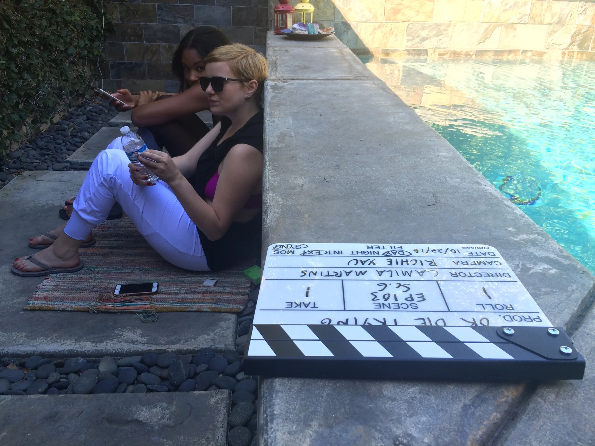 "Raegan" (Myah Hollis) and "Ellie" (Sarah Hawkins) in-between takes, both in Hari Mari flip flops, on Day 6 of OR DIE TRYING, Season 1.